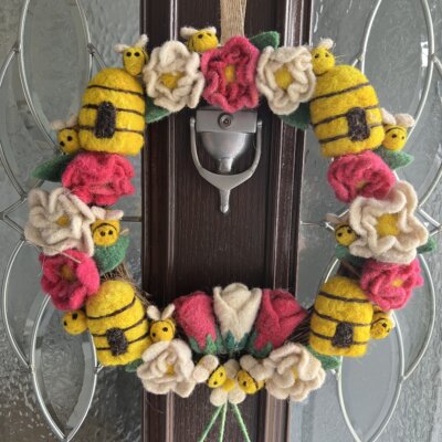 I process (wash/ card/ dye) sheep fleece and needle felt the wool into wreaths, decorations, and flowers.
